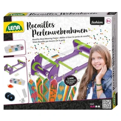 Bead weaving frame with beads and yarn for making magical bracelets, a great toy to spend time for children COMPLETE SET Includes 6 bead colors, thread and needle for instant start to jewelry making High quality materials: durable plastic for the loom frame and beads - quality that convinces Family time: crafting together encourages creativity and creates beautiful memories - ideal for ages 8 and up LENA Rocailles bead weaving frame, folding box, contents: weaving frame, beads, yarn, beading needle, instructions, craft set, colour: colourful, dimensions: 28 x 5 x 24 cm, weight: 348 g, item no. : 42722, EAN: 4006942901401, Manufacturer: SiMM Spielwaren GmbH