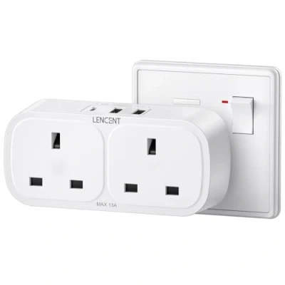 5-IN-1 Double Socket Adapter: This multi plug adaptor turns a single socket into 2 AC outlets (250 V / 13 A, 3250 W max) and 3 USB ports (total 3.4 A max), charging up to 5 devices simultaneously, ideal for both home and office setups 3 USB Charging Ports: The double plug adapter uk has 2 USB-A ports (2.4 A Max) and 1 USB-C port (3 A max); with the unique AUTO-ID tech, the socket adapter offers optimal charging for smartphones, tablets, headphones, and more Stable & Reliable Connection: Plug in with confidence even with multiple devices in use; this wall plug extender is built to fit securely in the wall socket, preventing wobbling or looseness for a consistently stable connection Non-Blocking & Space-Saving Design: This dual plug adapter extends to one side, ensuring it won't block the adjacent switches and the other socket; its neat design frees up outlet space and reduces wire clutter Multiple Safety Protection: With a 750ºC fire-resistant casing and child-friendly safety shutters, this 2-way plug socket extension protects against over-voltage, overload, over-current, and short-circuit for safer charging