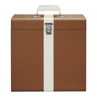 Lenco Classic Phono TTA 301 Storage Case for 30 Vinyl Records with Carry Handle and Metal Buckle Protective Velvet Lining Brown/White