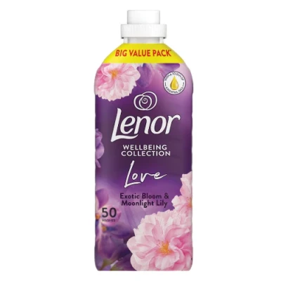 Elevate every wash with the lush floral fragrance of Lenor Exotic Bloom & Moonlight Lily. This 1.65L fabric softener leaves clothes irresistibly soft, fresh, and gently scented.. Lush dual fragrance exotic florals with soft lily undertones. Long-lasting freshness up to 1 week of scent on clothes. Softens fabrics helps reduce static cling and wrinkles. Up to 55 washes per bottle. Dermatologically tested gentle on ski. Suitable for machine and hand washing