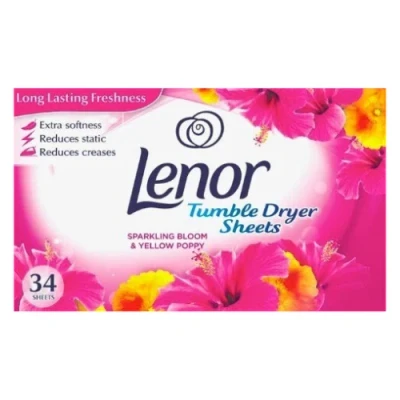 Add softness and long lasting freshness to your laundry with Lenor Tumble Dryer Sheets Pink Blossom, designed to reduce static and creases while leaving fabrics delicately scented.. Pink Blossom fragrance with soft floral freshness. Helps add extra softness to clothes during tumble drying. Reduces static cling for more comfortable wear. Helps reduce creases to make ironing easier. Pack of 34 sheets ideal for regular tumble dryer use