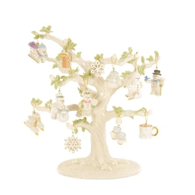 Material: porcelain 24K gold accents Gold cords for hanging For decorative use Includes (12) ornaments and (1) ornament tree Ornament tree measures 12.25"H x 10"L x 8"W Imported