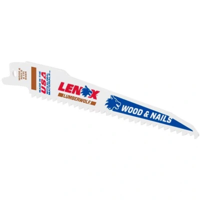 General description The LENOX® LumberWolf Reciprocating Saw Blades are designed for durability and efficiency, making them ideal for cutting wood, whether clean or nail embedded. This pack includes 25 blades, each measuring 152 x 19 x 1.3mm with a 6 TPI configuration. Technical specifications Blade dimensions: 152 x 19 x 1.3mm Teeth per inch (TPI): 6 Other information Made with POWER BLAST TECHNOLOGY™ for increased durability and reduced breaks. Patented T2™ Technology optimizes chip removal and reduces cutting forces. Tuff Tooth™ design enhances strength and longevity. Unique blade configuration allows for cutting in tight areas.