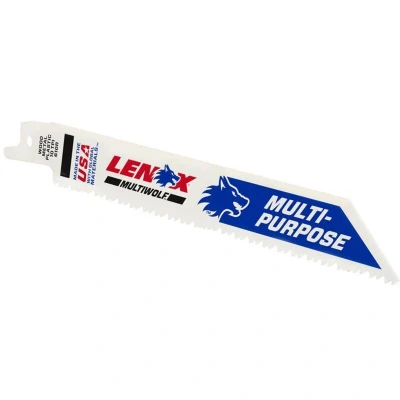 General description Lenox MultiWolf Wave Edge Reciprocating Saw Blades are designed for durability and efficiency. Made with POWER BLAST TECHNOLOGY™, these blades are strengthened to reduce breaks and enhance longevity. The patented T2™ technology optimizes chip removal, providing an efficient cut across a wide range of materials and offering 2X life compared to previous models. Each blade features an aggressive tang and a tapered shape, making them ideal for cutting in tight spaces. Technical specifications Dimensions: 152 x 19 x 0.9 mm Teeth per inch (TPI): 10 Pack size: 5 blades