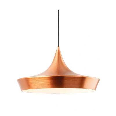 The Firstlight Leo Pendant Light is expertly constructed from spun aluminum, showcasing a unique brushed copper exterior that exudes a warm, rustic charm. This striking finish seamlessly integrates with modern decors, making it a versatile design piece for various settings. The interior of the pendant is elegantly painted white, ensuring optimal light output and creating a harmonious contrast with the copper exterior.