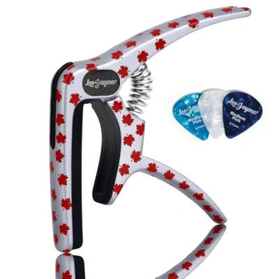 Premium Craftsmanship: The Leo Jaymz capo is designed for acoustic, electric guitars, as well as ukuleles, bass guitars, banjos, and mandolins. Sleek Zinc Alloy Design: Crafted from silver-plated zinc alloy. It perfectly balances style and function, offering both a chic appearance and an effortless playing experience. Precision Tension for Clear Sound: Built with an industrial-strength spring, this capo ensures precise tension on the strings, eliminating fret buzz and delivering crystal-clear sound for impeccable performances. Multi-Functionality (3-in-1): This versatile accessory combines three essential tools in one: a capo, pick holder, and string puller, covering all your needs during performances and practice sessions. String Protection: The silicone strip pads are designed with the ideal hardness, ensuring they won't damage your strings. Additionally, the materials are free from any chemical reactions that could harm your instrument. Ideal for All Musicians: Whether you're a seasoned player or just starting, this capo is perfect for a wide variety of stringed instruments, catering to musicians of all skill levels and styles.