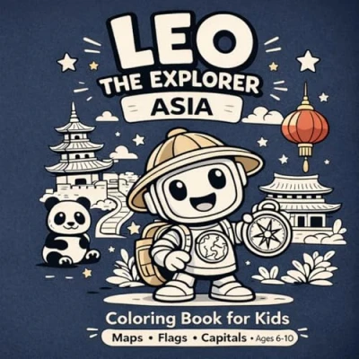 Leo the Explorer: Asia Coloring Book for Kids: Maps, Flags, Capitals and Landmarks Fun Educational Geography Activity Kids Ages 610