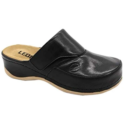 LEON 2019 Leather Slip on Womens Ladies Mule Clogs Slippers Shoes, Black, EU 38, UK 5
