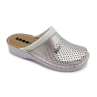 LEON V262 Leather Slip on Womens Ladies Mule Clogs Slippers Shoes, Pearl, EU 41, UK 7.5