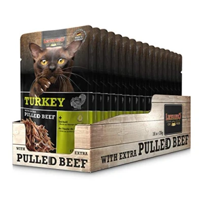 Complete food for adult cats: LEONARDO Turkey with extra shredded beef Juicy turkey pate combined with shredded meat to offer your cat the delicious "chewing experience" Each serving is cooked gently and refined with salmon oil. Our quality: Made in Germany, Guaranteed with the best ingredients, Excellent taste and tolerability, Meat products only from animals suitable for human consumption, With fresh meat OUR QUALITY. Made in Germany with high quality standards. Meat products from animals suitable for human consumption. No animal tests are performed. Products made without artificial colors, no flavor enhancers, no preservatives and no soy proteins.