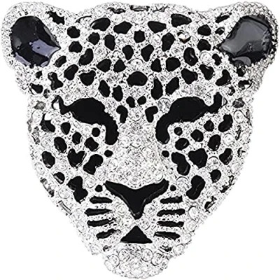 Leopard Brooch Pin Jewelry Vintage Spotted Rhinestone Crystal Lapel Pins Back (Silver)
