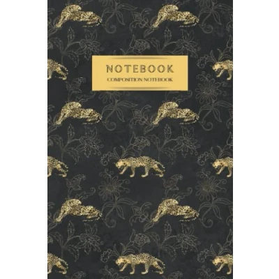 Leopard Print Composition Notebook (Gold & Black): Classic Animal Pattern, Lined Journal, 6"x9", 120 Pages