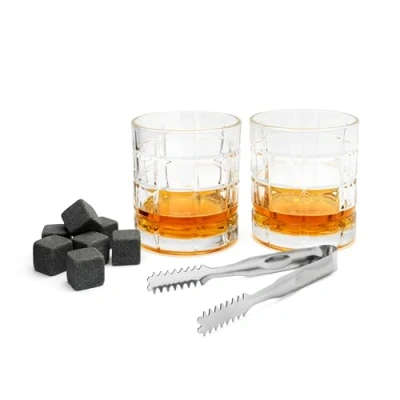 Giftset for the whiskey lover Two glasses, ice cubes and tongs In wooden gift box Dishwasher safe Brand Leopold Vienna