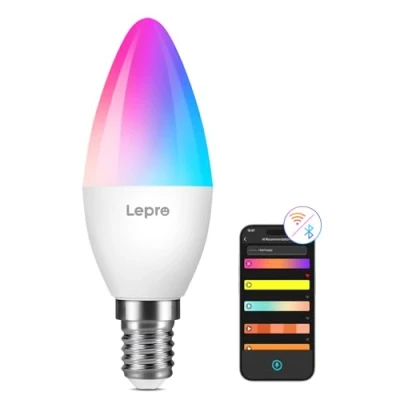 Lepro LightGPM 4 - Personalized AI Lighting Designer - No more generic lighting! Just tell LightGPM 4 what you love, and it never forgets your favorite colors and effects. The more you use it, the more the lighting design suits your preferences—make it your personalized AI lighting designer! (Note: Requires downloading the Lepro app and is not compatible with LampUX or Smart Life app.) Upgraded Voice Control-Easy to use. No manual setup or preset scrolling, just tell the Lepro app what you want: ignite holiday vibes, elevate parties, or mirror your favorite movie and game themes—and get perfect lighting in seconds (Not Work with Dimmer). Snap a Photo, Capture the Vibe - Not sure how to describe the lighting design you want? LightGPM recognizes images. Snap a picture of your room for a lighting design that's perfect for the space, or upload a favorite movie poster or game character to instantly theme your space. Timer/Schedule & Smart Wake-up - With Lepro's timer feature, you can set your life lighting schedule as needed. Lepro smart bluetooth bulbs' dedicated wake-up and sleep modes simulate sunrise and sunset by adjusting the brightness at set times, promoting a natural sleep-wake cycle. LightBeats Music Sync - With LightBeats algorithms and a highly sensitive sound pickup, the Lepro smart LED candle bulb can seamlessly dance to the beats of your favorite songs, creating a dynamic atmosphere suitable for parties and holidays. Hands-free Voice Control - The dimmable small screw Bulb can easily and quickly connect to Alexa and Google Assistant to provide effortless hands-free voice control. Note: Before connecting to Alexa or Google Assistant, please make sure the bulb is connected to 2.4 GHz WiFi through the Lepro APP. Group Control & Device Sharing Lepro APP smart control allows you to easily manage multiple colour changing light bulb at once and share control permissions with family members for collaborative use. Over 85% Energy-saving - Using LED technology, the 4.9W RGB LED smart bulbs can replace a 40W incandescent bulb and provide 470lm brightness, saving more than 87% energy.