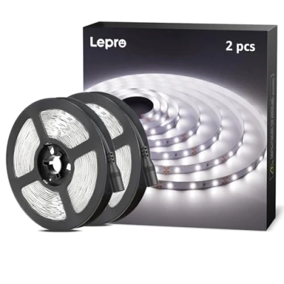 Lepro Bright White LED Strip Light 10M (2x5M), 2x2300lm 6000K Tape Light, Stick on Lights for Kitchen Under Cabinet (12V Power Supply Not Included)