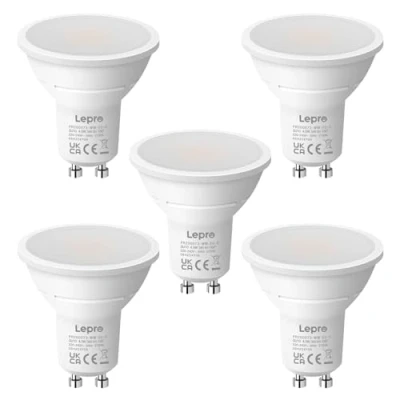 Lepro GU10 LED Bulbs Warm White, 4W 345lm 2700K, Energy Saving Light Bulbs, 50W Halogen Spotlight Equivalent, 100 Beam Angle, Non Dimmable, Pack of 5