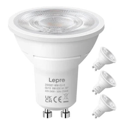 High Brightness 630LM – 6W GU10 LED bulbs delivers up to 630 lumens, equivalent to 80W traditional bulbs, providing brighter and clearer illumination while saving 92% energy. Warm White 2700K Lighting – The gu10 led bulbs warm white produce a cosy and comfortable warm white light, perfect for living rooms, bedrooms, dining areas, and other relaxing spaces. 38° Focused Beam – Precise 38° beam angle delivers concentrated spotlighting, making the gu10 spotlight ideal for accent lighting to highlight artwork, shelves, or dining tables with a clean and elegant spotlight effect. High Quality Light – Flicker-free gu10 LED spotlight with instant on (80 ensures vivid, natural colour rendering and comfortable illumination. Wide Application – Standard GU10 fitting, non-dimmable, easy to install in ceiling lights, spotlights, track lights and other gu10 light bulbs fixtures.