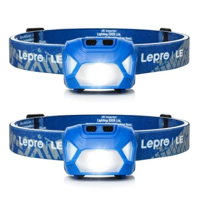 Lepro Head Torch, [2 Pack] Super Bright LED Headlamp with 6 Lighting Modes, Waterproof, Battery Powered Lightweight Headlight for Cycling Running Camping Kids Adults [Not Included Battery]