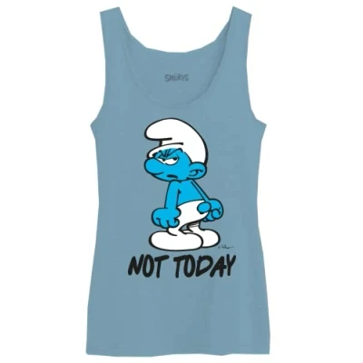 Les Schtroumpfs "Not Today" WOSMURFTK003 Women's Tank Top, Blue, Size S 100% Official Licensed Product Machine wash at 30°C inside out
