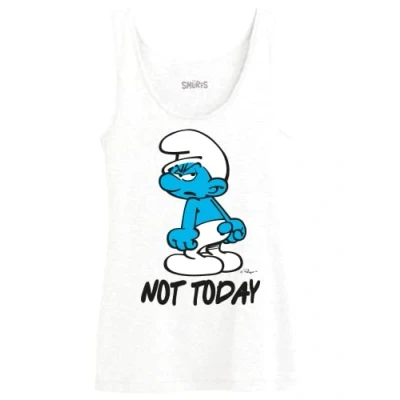 Les Schtroumpfs "Not Today" WOSMURFTK003 Women's Tank Top, White, Size XS 100% Official Licensed Product Machine wash at 30°C inside out