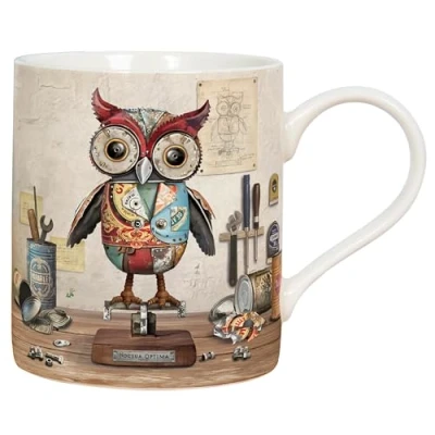 Lesser & PAVEY Bug Art Scrap Owl Mug for Home Kitchen Stylish Ceramic Mugs Tea Coffee Lovely Cup Set Mens Gifts Birthday Women