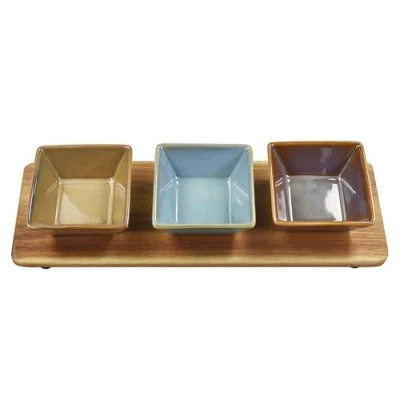 Lesser & Pavey Snack Dishes Wood Trays for Food Serving Snacks Platter with Bowls Colourful Designers Round and Square Blue Maroon S3 Tray Elements