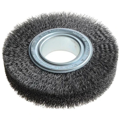 General description This Lessmann Wheel Brush Set is designed for effective surface finishing and cleaning tasks. It excels in removing rust, paint, and dirt, while also being suitable for roughening, deburring, stripping, or polishing various surfaces. The brushes are made with crimped steel wire, ensuring durability and versatility when used with different grinding machines. Technical specifications Diameter: 150 mm Width: 30-32 mm Maximum RPM: 6,000 Wire Material: Steel, crimped Wire Gauge: 0.30/0.35 mm Bore: 13/50 mm Compatibility and accessories Supplied with multiple adaptor sets for easy mounting on various grinding machines. The adaptor sets include sizes such as: 16 mm 20 mm 22.2 mm 32 mm 50 mm 1 inch 1/2 inch Installation Designed to be mounted on compatible grinding machines using the provided adaptors. Ensure the correct adaptor size is used for secure attachment and optimal performance. Usage Ideal for removing rust, paint, and dirt from surfaces. Suitable for roughening,