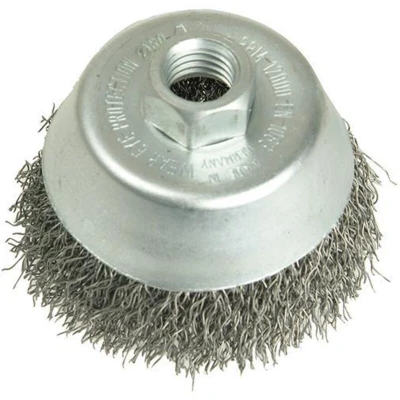General description This stainless steel wire cup brush is designed for cleaning large surfaces effectively. It removes rust, paint, dirt, and scale, making it suitable for surface preparation and finishing tasks. The brush features a wavy wire design that enhances its cleaning efficiency and durability. Technical specifications Material: Rust-resistant stainless steel wire Brush diameter: 80 mm Wire thickness: 0.30 mm Connection: M14 fitting Wire type: Wavy wire Maximum rotational speed: 8,500 rpm Compatibility and accessories Compatible with standard power drills and rotary tools with M14 connection Suitable for use with various abrasive and cleaning attachments Installation Ensure the power tool is turned off and unplugged before installation. Attach the brush securely to the M14 fitting of your rotary tool or drill. Check that the attachment is firmly fixed before use. Usage Use the brush at appropriate speeds, up to 8,500 rpm, for effective cleaning. Apply moderate pressure