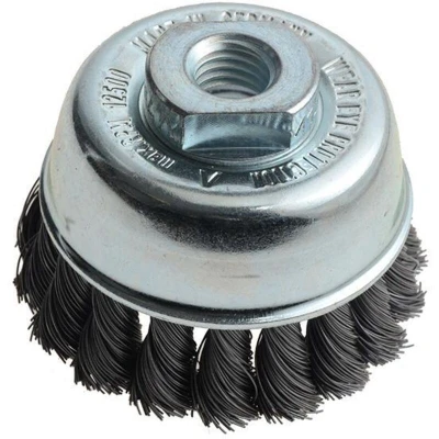 General description This heavy-duty wire brush features twisted wire bristles arranged alternately in right and left directions, making it highly effective for heavy cleaning tasks. It is ideal for removing slag, rust, scale, concrete residues, and other stubborn debris. The brush is especially suitable for cleaning corners and edges, and is designed for demanding surface preparation and cleaning applications with a long lifespan. Technical specifications Type: Twisted wire brush with alternating right and left twist Application: Heavy-duty cleaning and surface preparation Wire material: Steel Wire thickness: 0.35mm Diameter: 65mm Speed: 12500 min⁻¹ Mounting: M14 threaded connection Compatibility and accessories Compatible with standard angle grinders and power tools with M14 connection Suitable for use with various grinding and cleaning attachments Installation Attach the brush securely to a compatible angle grinder with an M14 threaded arbor Ensure the tool is turned off before