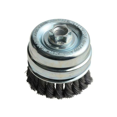 General description This Heavy-Duty Steel Wire Bowl Brush features a robust steel wire bristle construction designed for heavy-duty cleaning tasks. It is ideal for preparing metal surfaces before painting and effectively removes rust, scale, slag, or concrete residues. The cup-shaped design includes a practical clamp that stabilizes the wire bristles, ensuring efficient operation. Technical specifications Diameter: 80mm Bore: M14 Wire Gauge: 0.50mm Wire Type: Steel Max RPM: 8,500 Compatibility and accessories Compatible with standard power drills and angle grinders Additional replacement wire brushes available Installation Attach the brush securely to your power tool following the manufacturer's instructions Ensure the clamp is properly engaged before use Usage Use for removing rust, paint, scale, slag, or concrete residues from metal surfaces Apply with appropriate pressure for effective cleaning Wear protective gear such as gloves and safety glasses during operation Other information