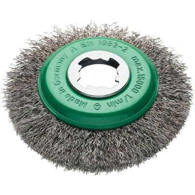 General description This stainless steel bevel brush is designed for use with angle grinders equipped with the X-Lock fitting. It is ideal for polishing, light deburring, and removing rust, paint, dirt, and scale from large steel surfaces. Made in Germany, it is suitable for metalworking, craft businesses, automotive workshops, and construction projects involving staircases, railings, and containers. Technical specifications Diameter: 115mm Material: Stainless steel wire Type: Bevel brush Design: Non-sparking for safe use on various metals Compatibility and accessories Compatible with angle grinders with X-Lock fitting Suitable for use with standard X-Lock angle grinder accessories Installation Attach the brush securely to an angle grinder with the X-Lock fitting Ensure the grinder is turned off before installation Check that the brush is properly mounted before use Usage Use the brush for polishing, deburring, or rust and paint removal on steel surfaces Operate at appropriate speeds