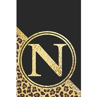 Letter N Notebook: Initial Monogram Blank Lined Notebook Journal Leopard Print Black and Gold