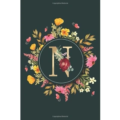 Letter N Notebook: Initial Monogram Journal Pretty Personalized Lined notebook For Kids, Girls, Women. ruled Size 6 x 9 inches 120 Pages