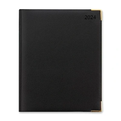 Quarto vertical week to view Textured, leather-look cover Gold corners and gilt paper edges Page size 259mm x 210mm Made in the UK