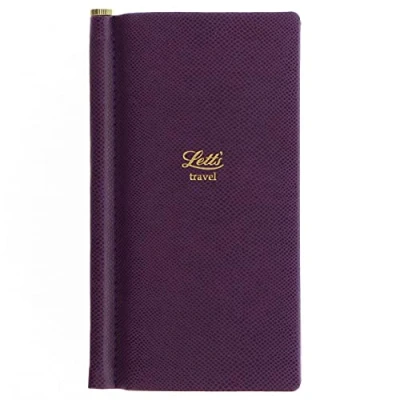 Purple leather-look cover Acid free cream fountain pen friendly paper Travel-useful information pages Gold ballpoint pen with refillable blue ink Made in Great Britain