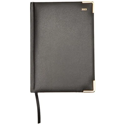 2023 diary, vertical week to view format Soft touch leather-look cover Gold corners and gilt foiled paper edges Page size 210mm x 148mm Made in the UK
