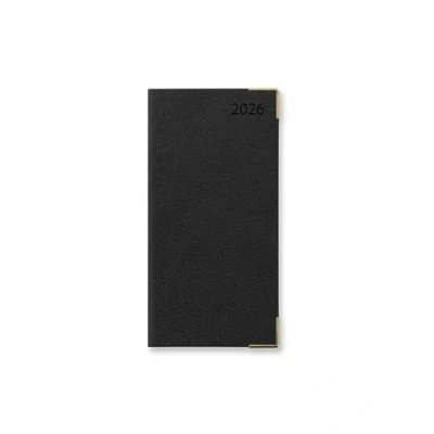 January - December 2026 diary - 26-TC3SUBK Slim week to view with appointments format Faux Leather cover Gold corners and gilt paper edges Page size 82mm x 166mm