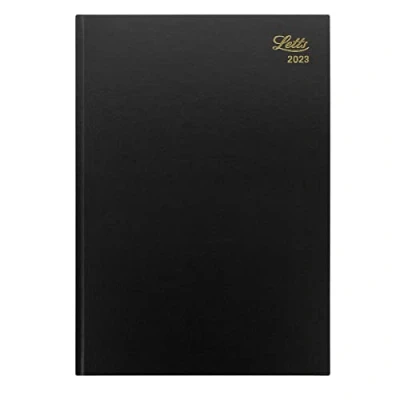 2023 diary A4 size Week to view format Hard black cover with foil embossed 2023 and Letts logo Made in the UK