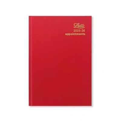 Letts of London Standard A5 academic 2025/2026 day to a page with appointments diary Red 26 TA1XRD