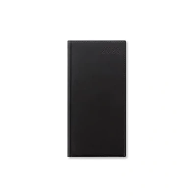 January - December 2026 diary - 26-080446 Slim week to view format Smooth leather-look padded cover Perforated page edges to find current day Page size 82mm x 166mm