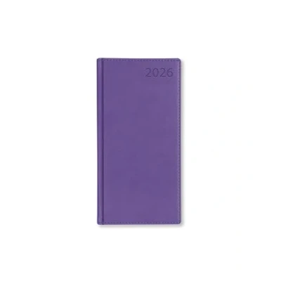 January - December 2026 diary - 26-081241 Slim week to view format Smooth leather-look padded cover Perforated page edges to find current day Page size 82mm x 166mm
