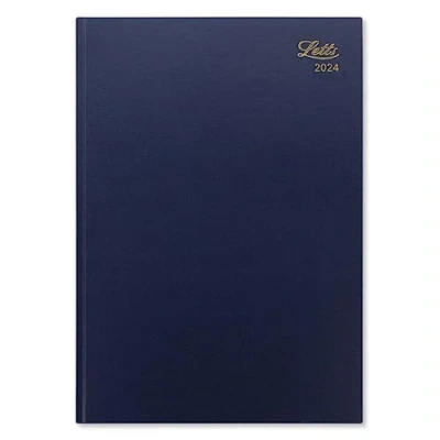 2024 diary A4 size Hard blue cover with foil embossed 2024 and Letts logo Week to view format Made in the UK