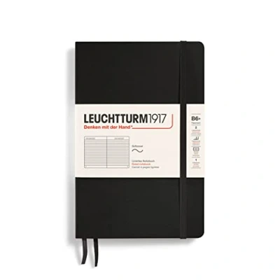 LEUCHTTURM1917 358288 Notebook Paperback (B6+), Softcover, 123 Numbered Pages, Ruled, Black