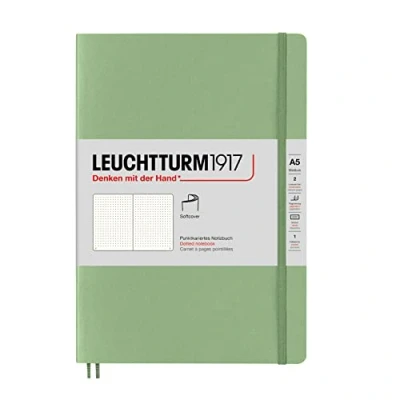 LEUCHTTURM1917 361592 Notebook Medium (A5), Softcover, 123 Numbered Pages, Sage, Dotted