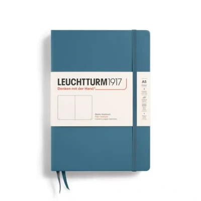 LEUCHTTURM1917 363333 Notebook Medium (A5), Hardcover, 251 Numbered Pages Stone Blue, Plain