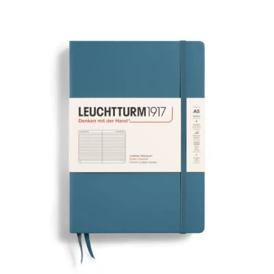 LEUCHTTURM1917 363335 Notebook Medium (A5), Hardcover, 251 Numbered Pages Stone Blue, Ruled