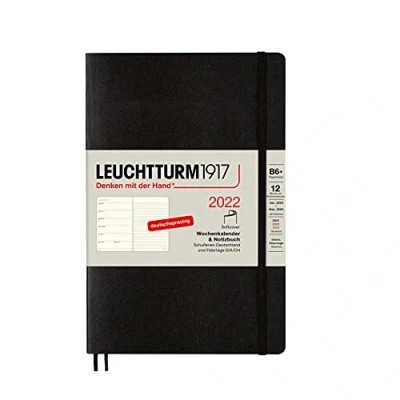 Leuchtturm1917 363566 Weekly Calendar & Notebook 2022 Softcover Paperback (B6+), 12 Months, Black, German
