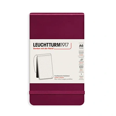 LEUCHTTURM1917 364413 Notepad Pocket (A6), Hardcover, 184 Numbered Pages, Port Red, Dotted