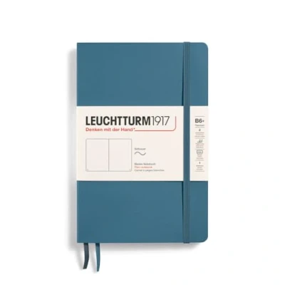 LEUCHTTURM1917 365642 Notebook Paperback (B6+), Softcover, 123 Numbered Pages, Stone Blue, Plain