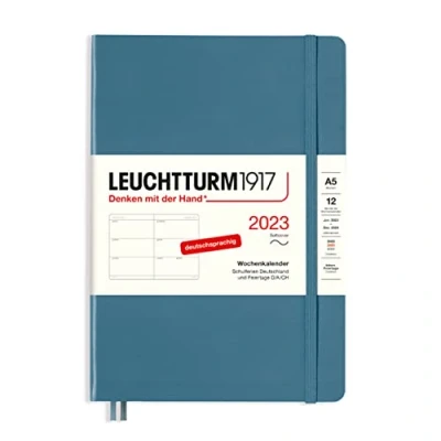 LEUCHTTURM1917 365750 Weekly Calendar, Soft Cover, Medium (A5) 2023, 12 Months, Stone Blue, German